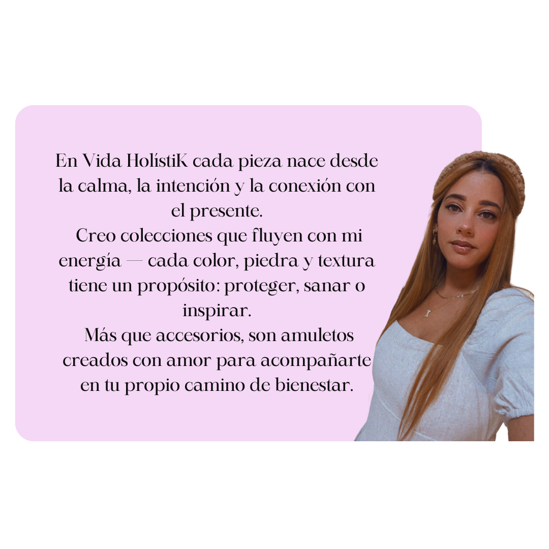 Crear piezas artesanales con intención y energía, combinando materiales naturales, colores y piedras que transmitan calma, protección y amor.