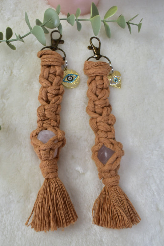 Llavero Marrón con Cuarzo Rosa (Amor Propio)