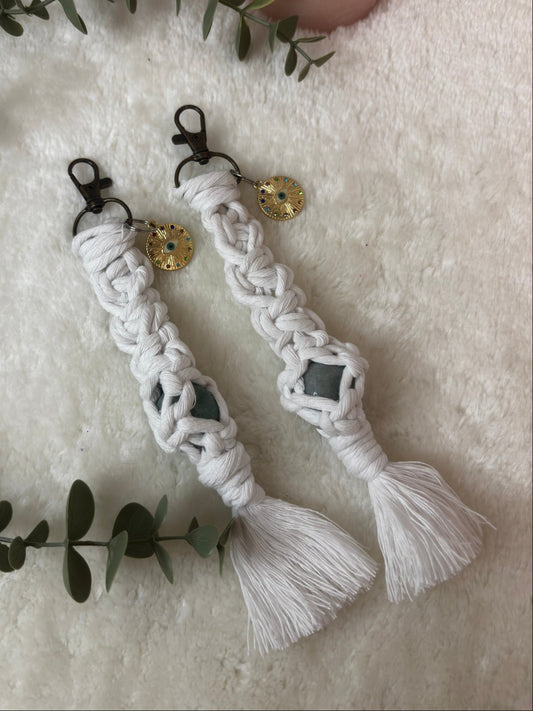 Llavero Blanco con Cuarzo Aventurina (Protección & Equilibrio)